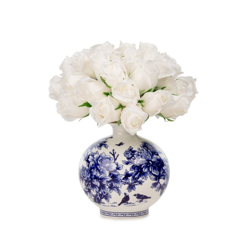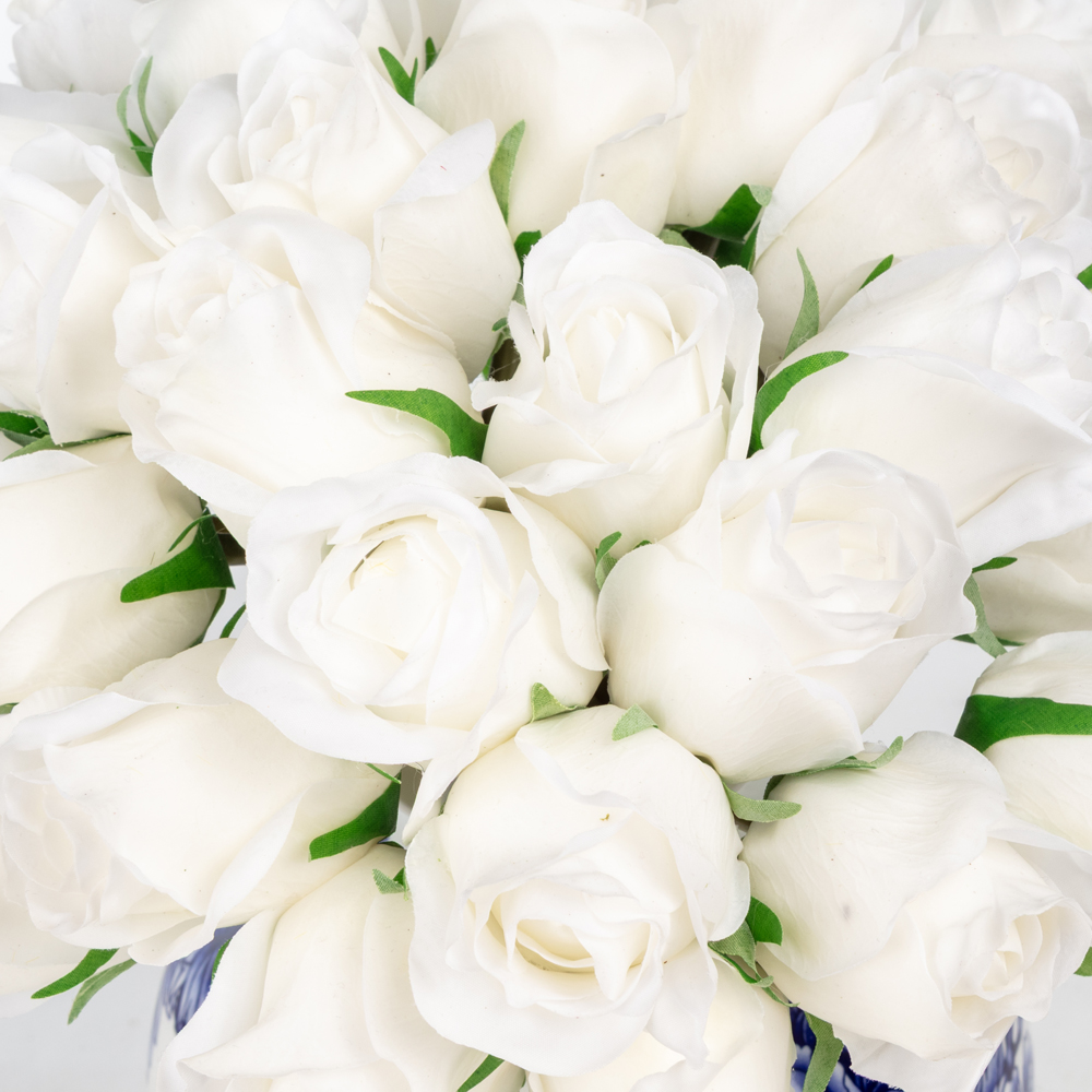 Bleu Blanc Vazo Islak Dokulu Gül Aranjman (27 CM)
