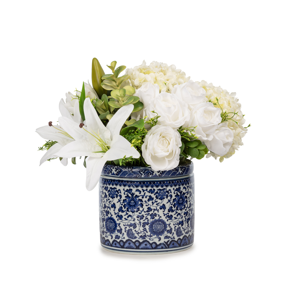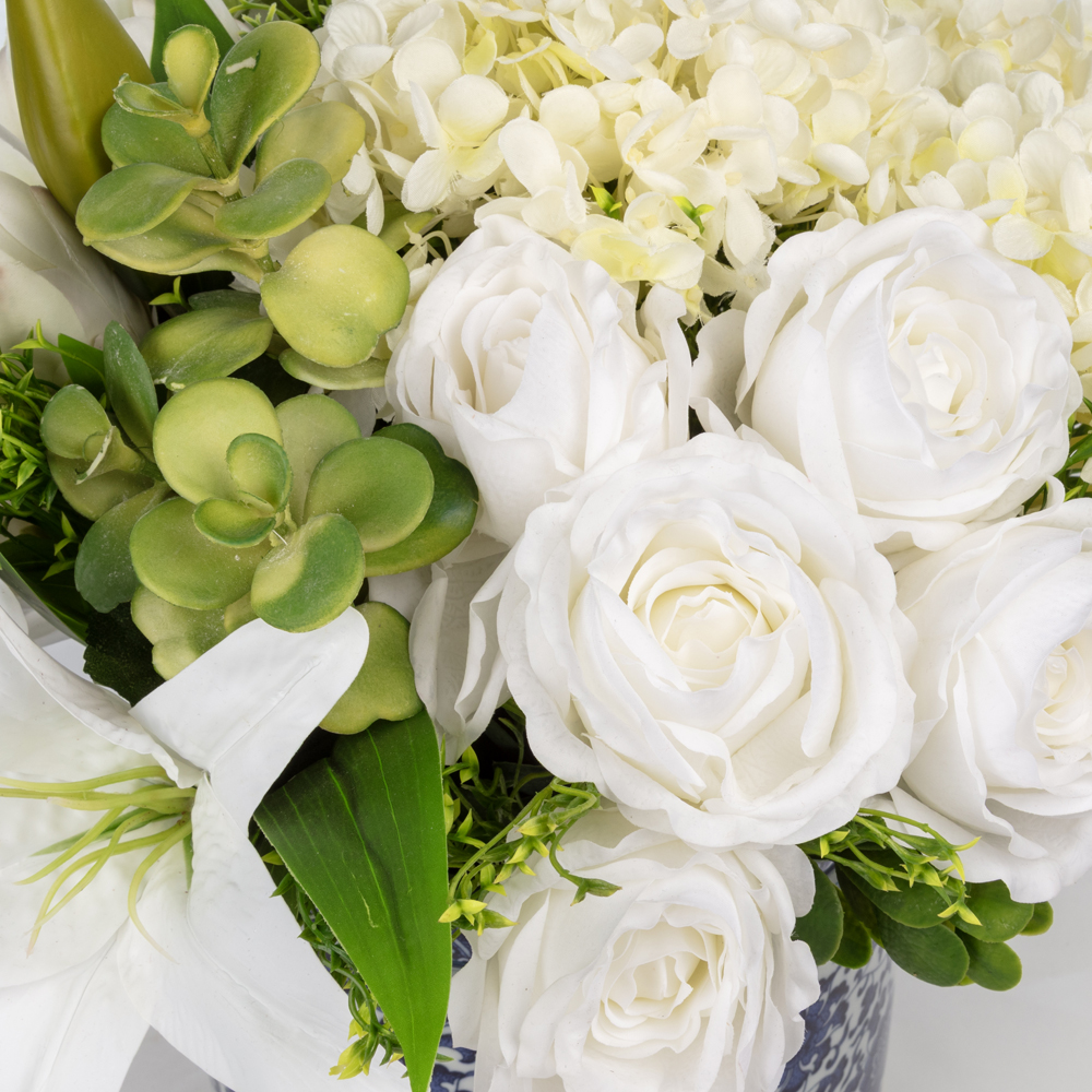 Bleu Blanc Vazo Islak Dokulu Lilyum Karışık Aranjman (40 CM)
