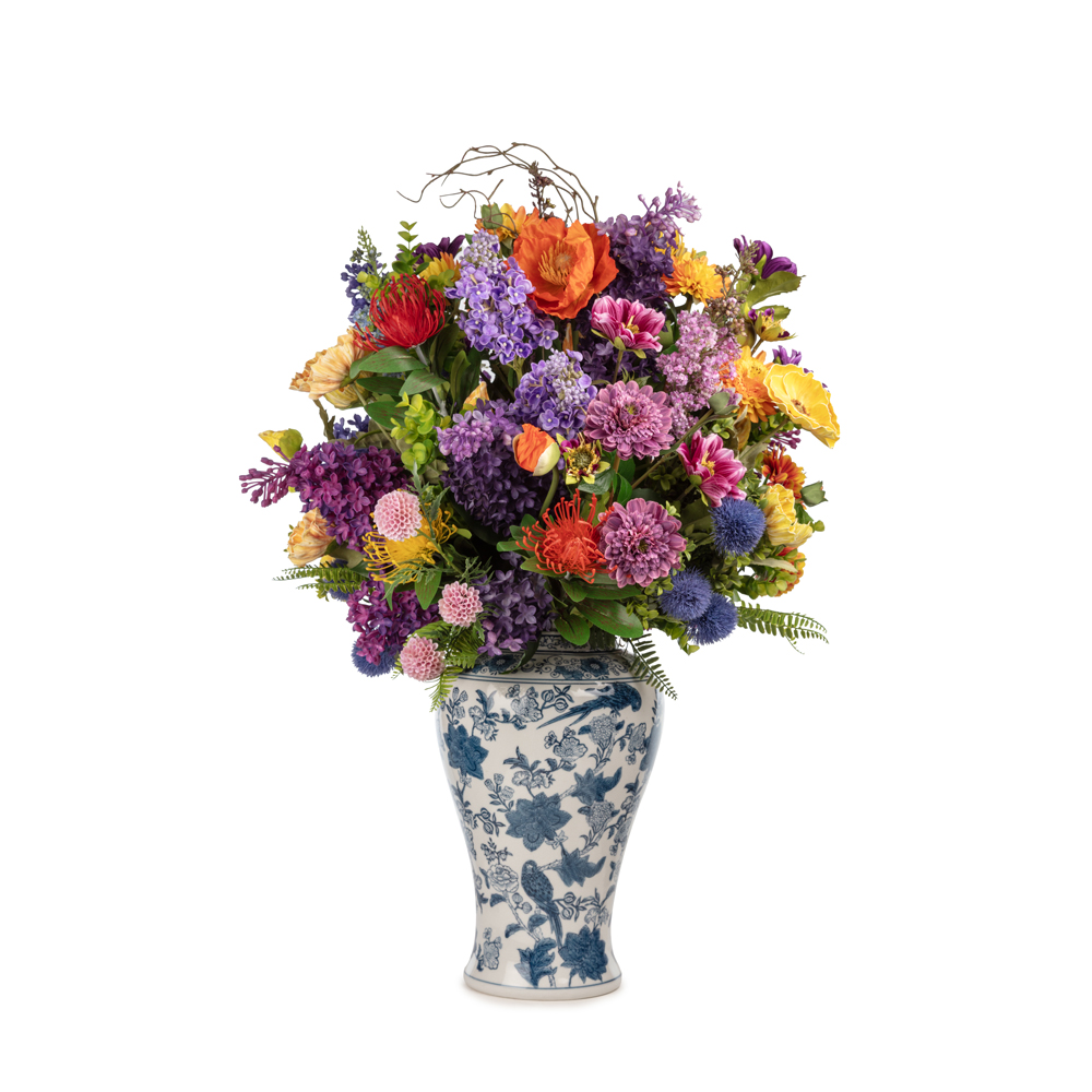 Bleu Blanc Vazo Karışık Gelincik Aranjman (85 CM)
