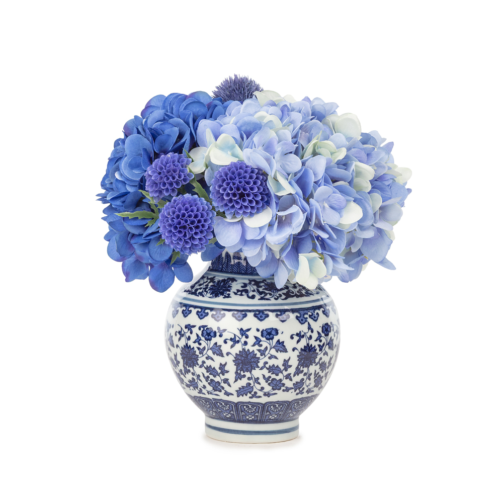 Bleu Blanc Vazo Karışık Ortanca Aranjman (27 CM)