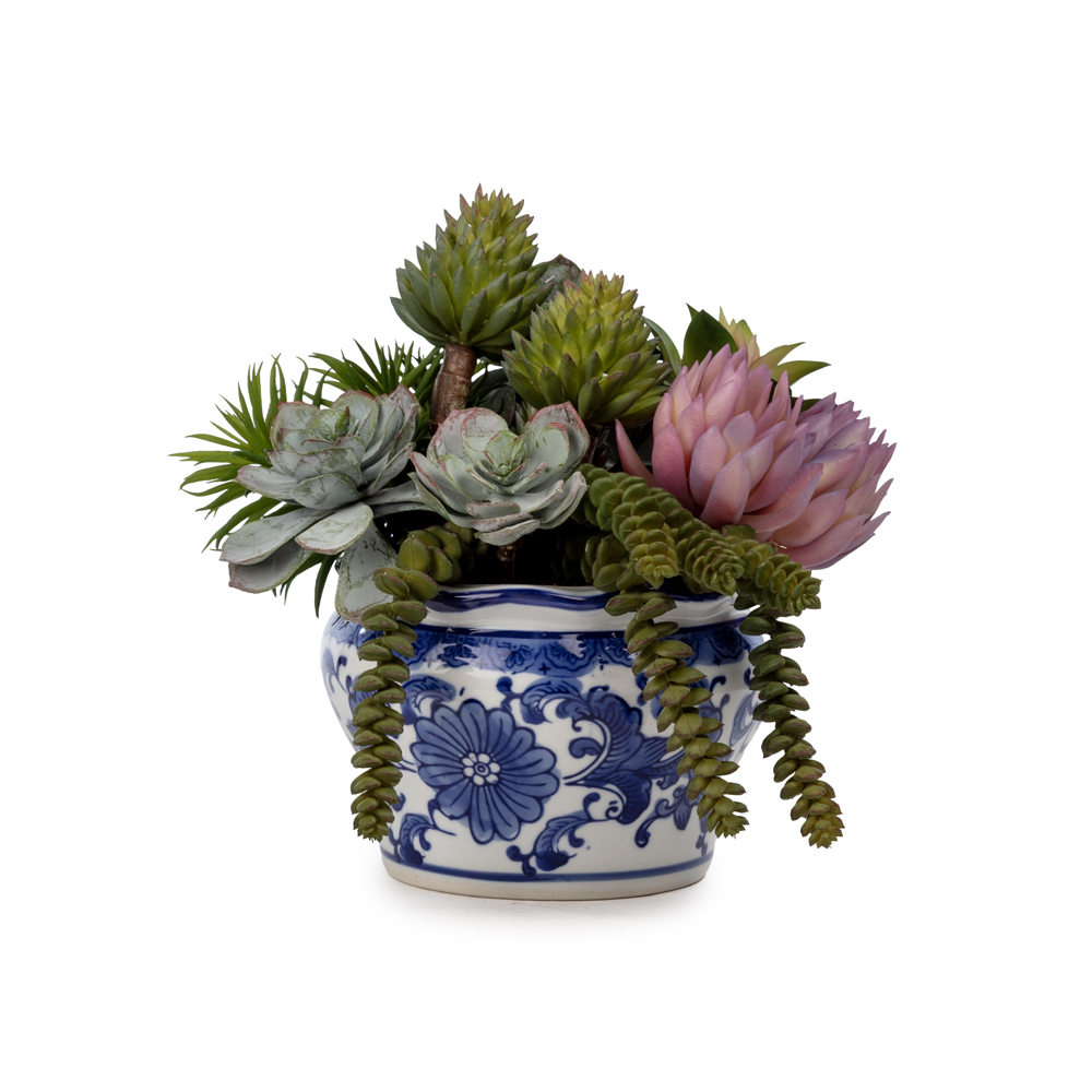 KUK Çiçek » Yapay Çiçek Aranjman » Bleu Blanc Vazolu Aranjmanlar » Bleu Blanc Vazo Karışık Sukkulent Aranjman ( 34 CM)