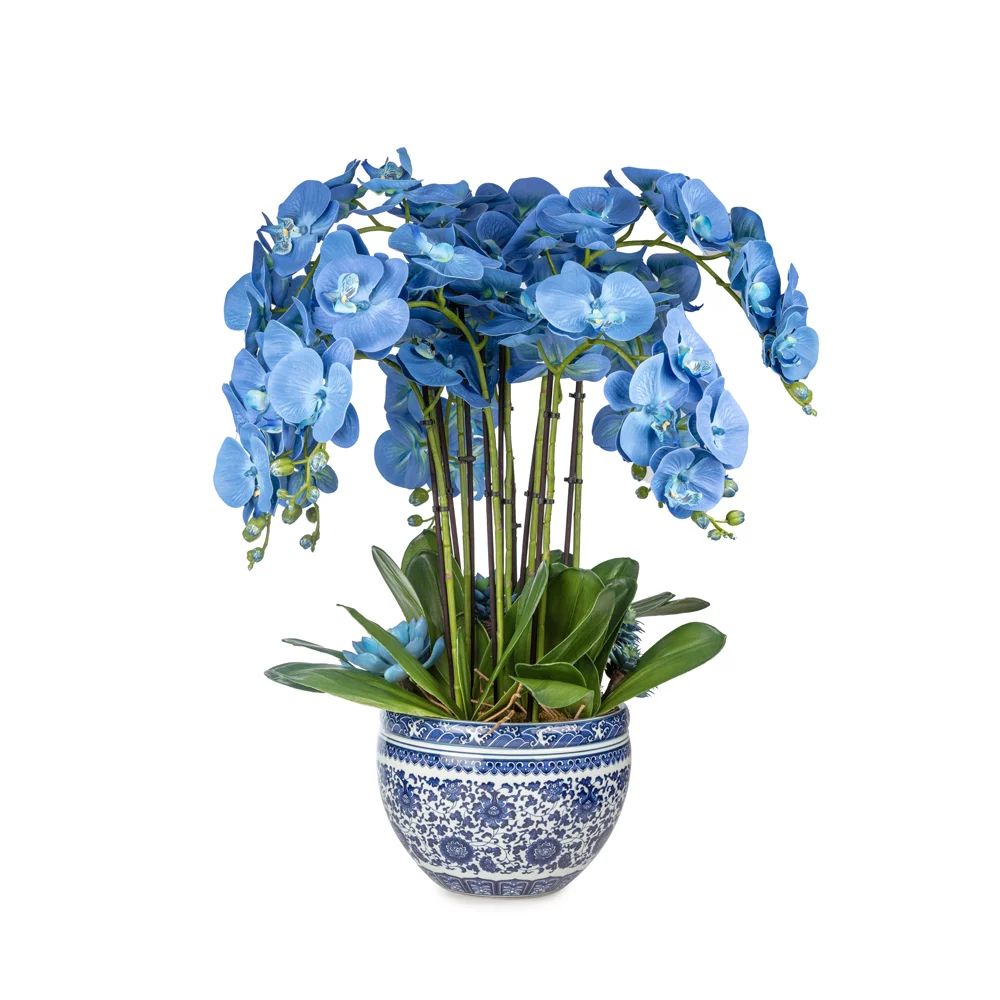 Bleu Blanc Vazoda Islak Dokulu Mavi Orkide Aranjman (70 CM)