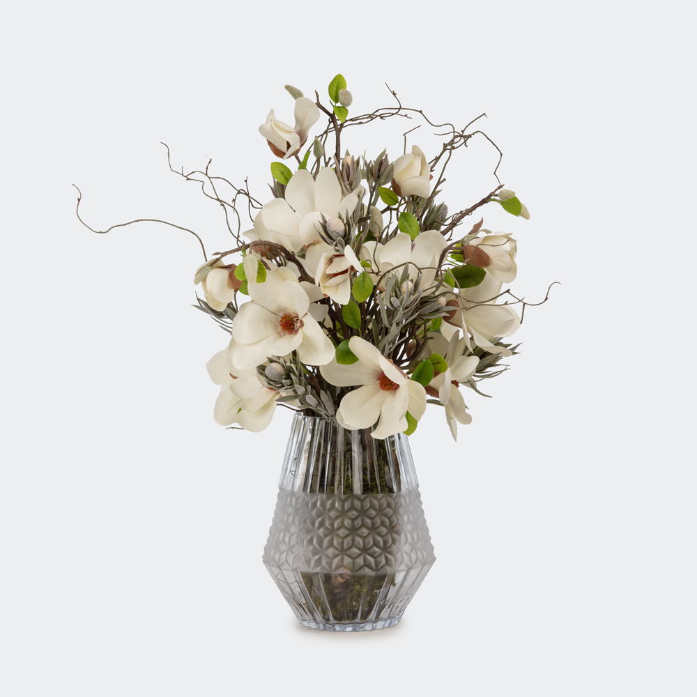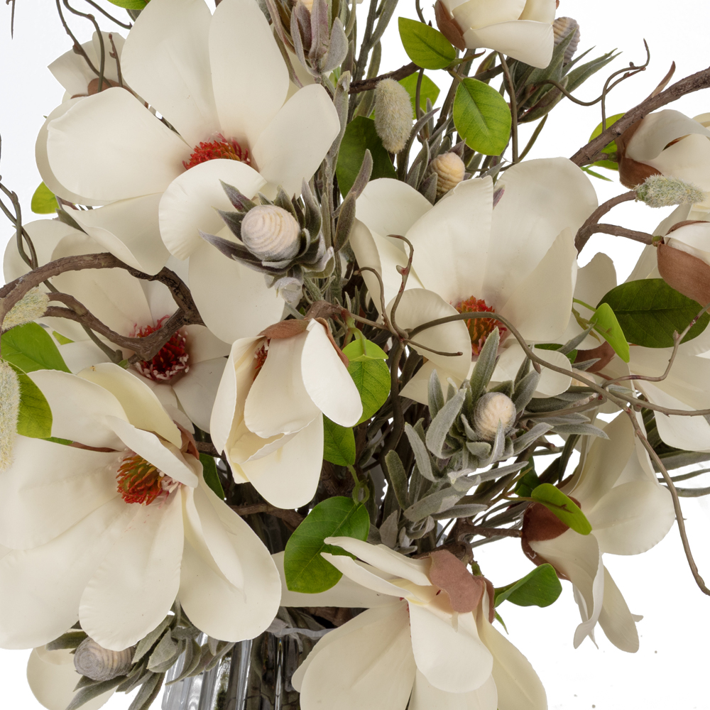 KUK Çiçek » Yapay Çiçek Aranjman » Cam Vazolu Aranjmanlar » Cam Vazoda Beyaz Manolya Aranjman (70 CM)