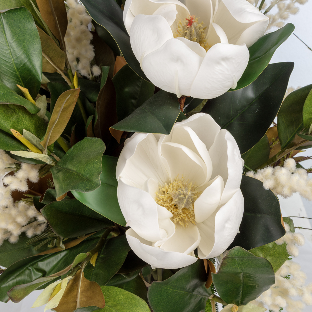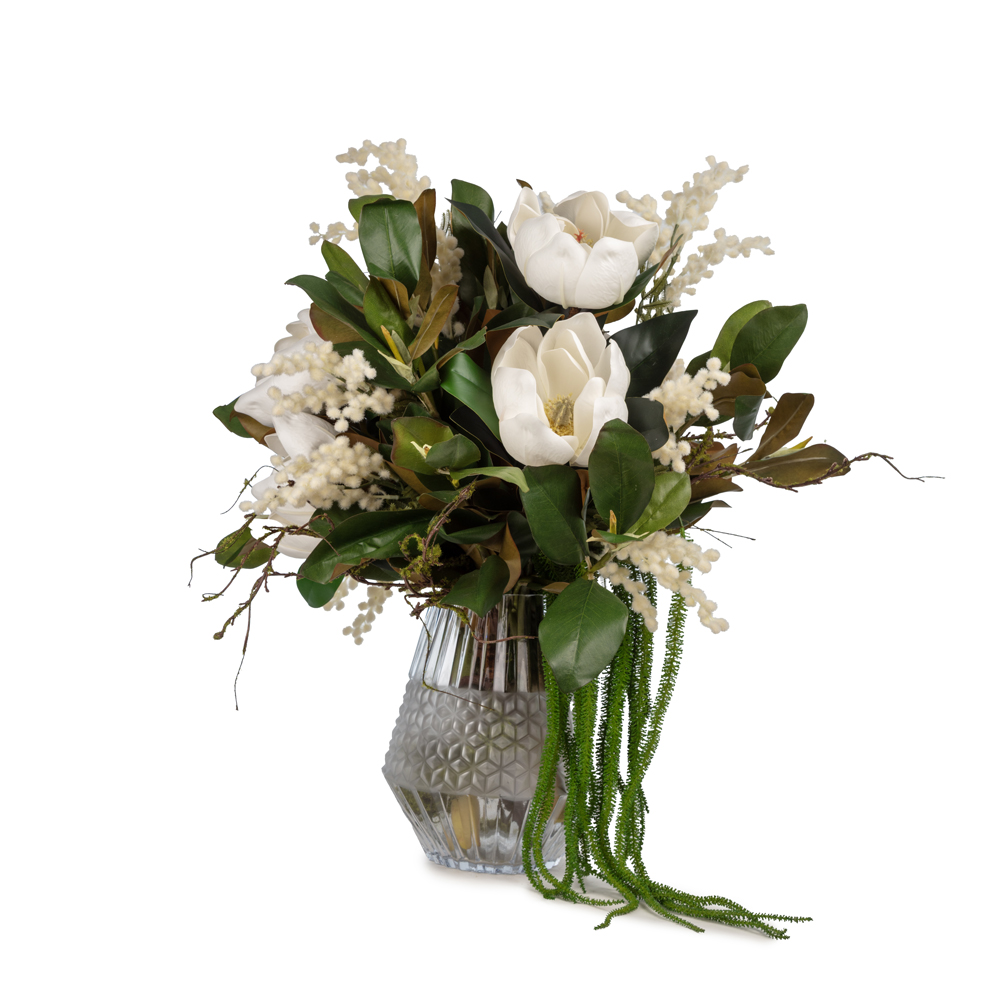 KUK Çiçek » Yapay Çiçek Aranjman » Cam Vazolu Aranjmanlar » Cam Vazoda Manolya Aranjman (65 CM)
