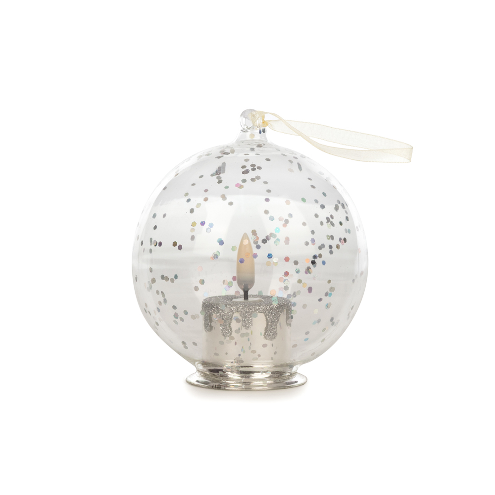Pil ile çalışan yanan mum efektli ışıklı cam top.
