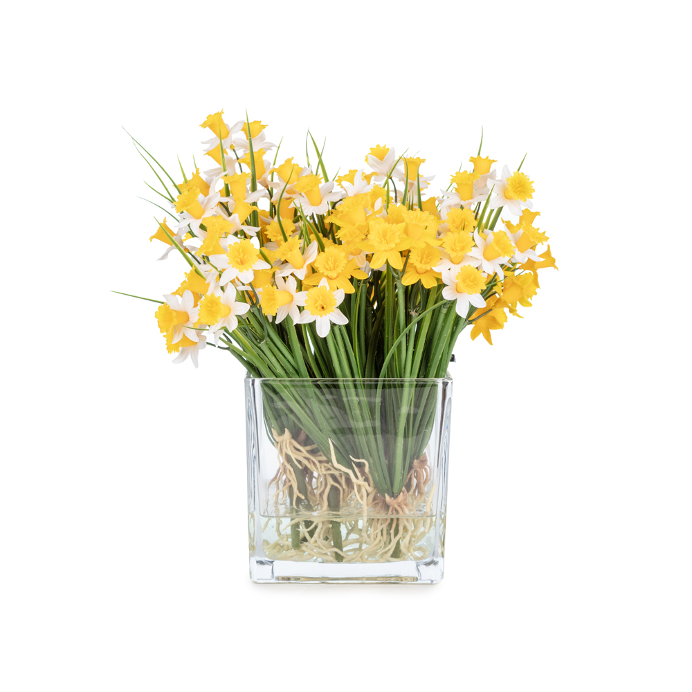 KUK Çiçek » Yapay Çiçek Aranjman » Cam Vazolu Aranjmanlar » Islak Dokulu Nergis Aranjman (30 CM)