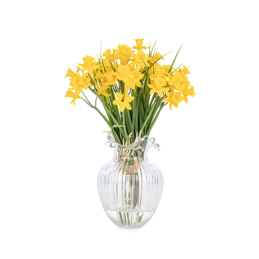 KUK Çiçek » Yapay Çiçek Aranjman » Cam Vazolu Aranjmanlar » Islak Dokulu Nergis Aranjman (32 CM)