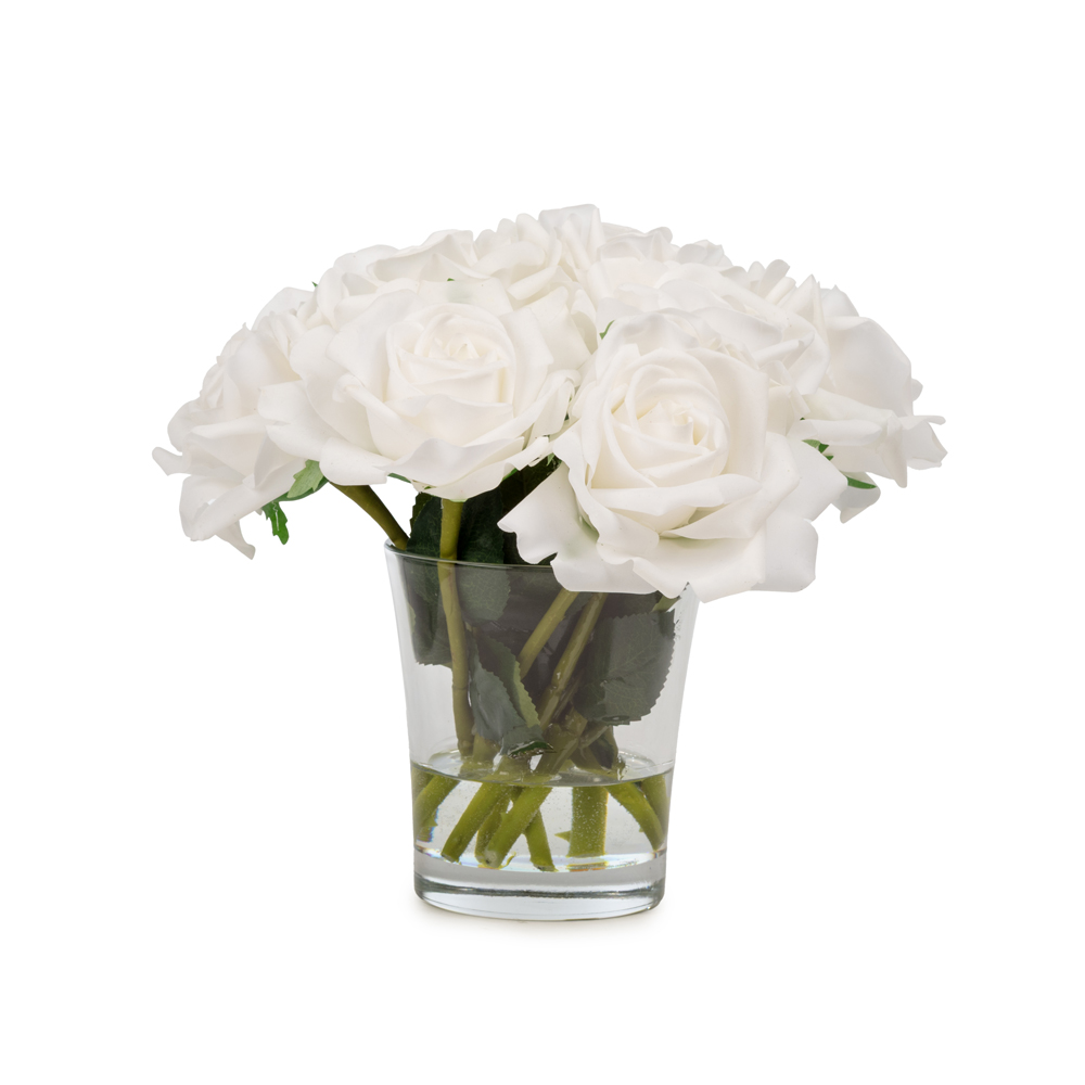 Jelli Cam Vazoda Islak Dokulu Beyaz Gül Aranjman (17 CM)