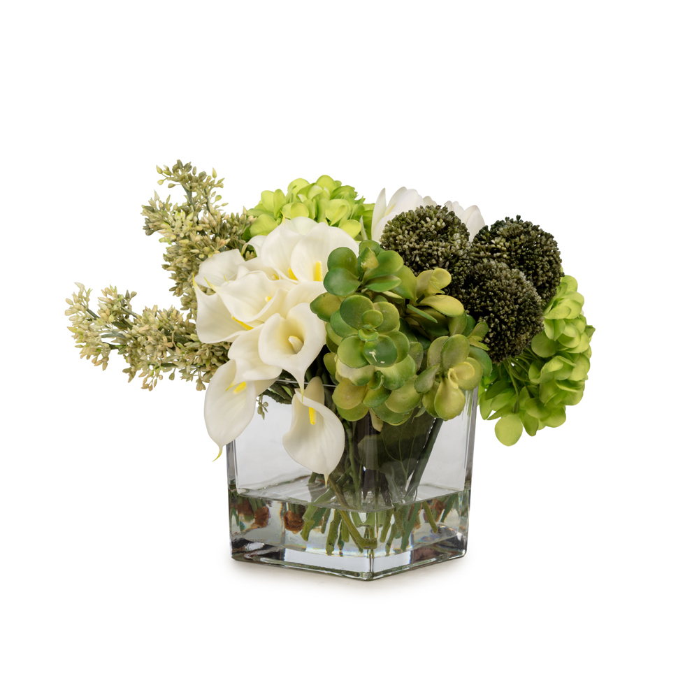 Jelli Cam Vazoda Islak Dokulu Karışık Aranjman (25 CM)