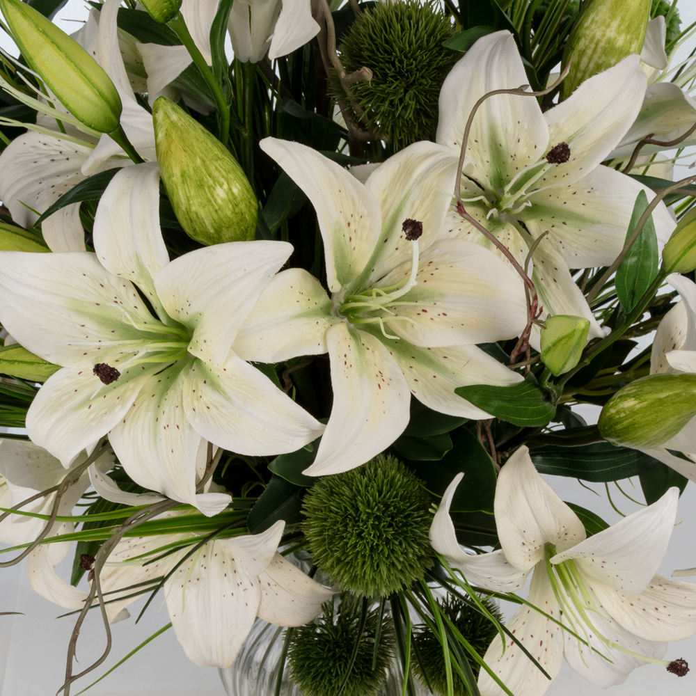 KUK Çiçek » Yapay Çiçek Aranjman » Jelli Cam Vazoda Aranjman » Jelli Cam Vazoda Islak Dokulu Lilyum Aranjman (70 CM)
