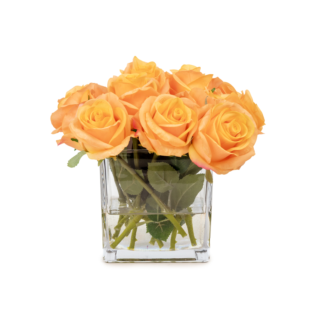 Jelli Cam Vazoda Islak Dokulu Turuncu Gonca Gül Aranjman (25 CM)