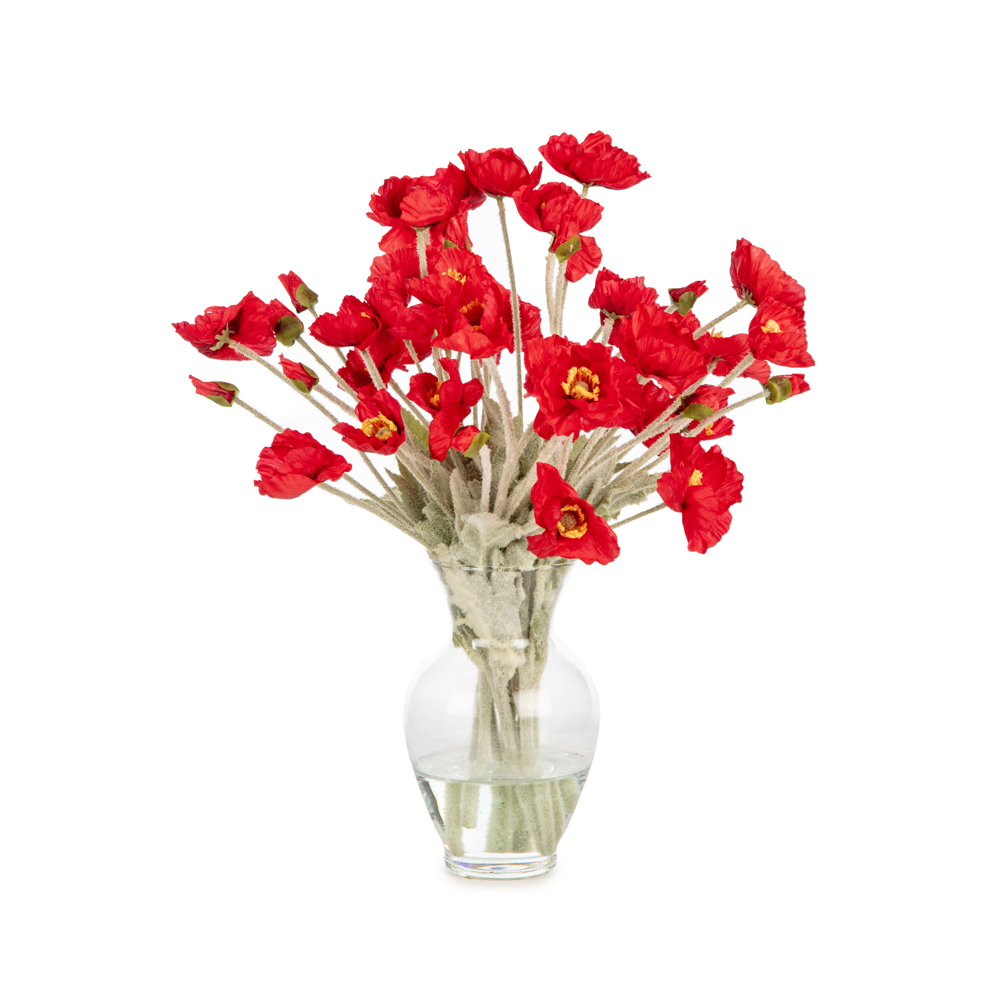 KUK Çiçek » Yapay Çiçek Aranjman » Cam Vazolu Aranjmanlar » Jelli Cam Vazoda Kırmızı Gelincik Aranjman (40 CM)