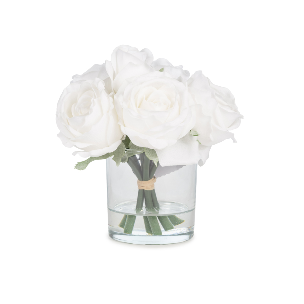 KUK Çiçek » Yapay Çiçek Aranjman » Cam Vazolu Aranjmanlar » Jelli Islak Dokulu Beyaz Gül Aranjman (18 CM)