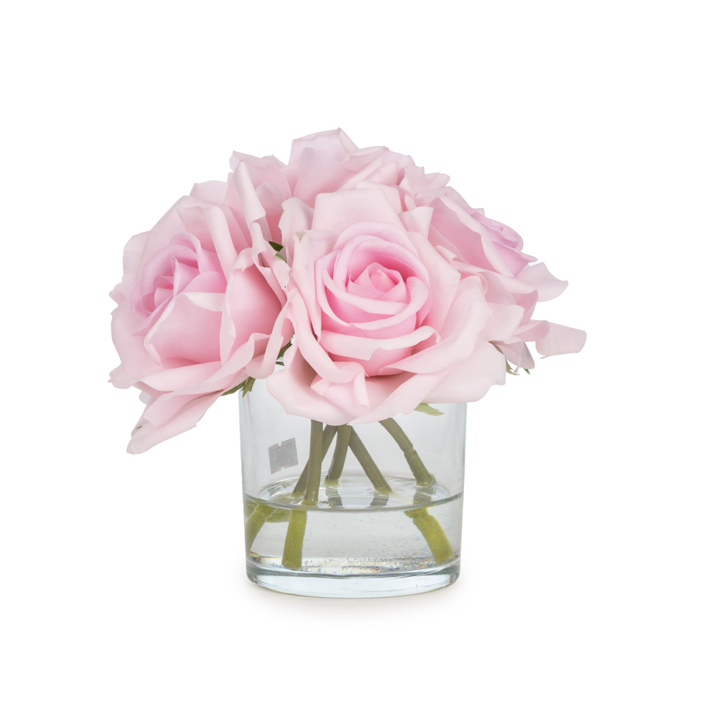 KUK Çiçek » Yapay Çiçek Aranjman » Cam Vazolu Aranjmanlar » Jelli Islak Dokulu Pembe Gül Aranjman (18 CM)