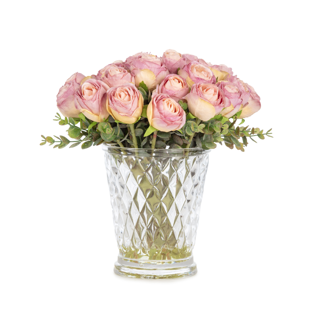 KUK Çiçek » Yapay Çiçek Aranjman » Cam Vazolu Aranjmanlar » Jelli Mini Lila Gül Aranjman (24 CM)