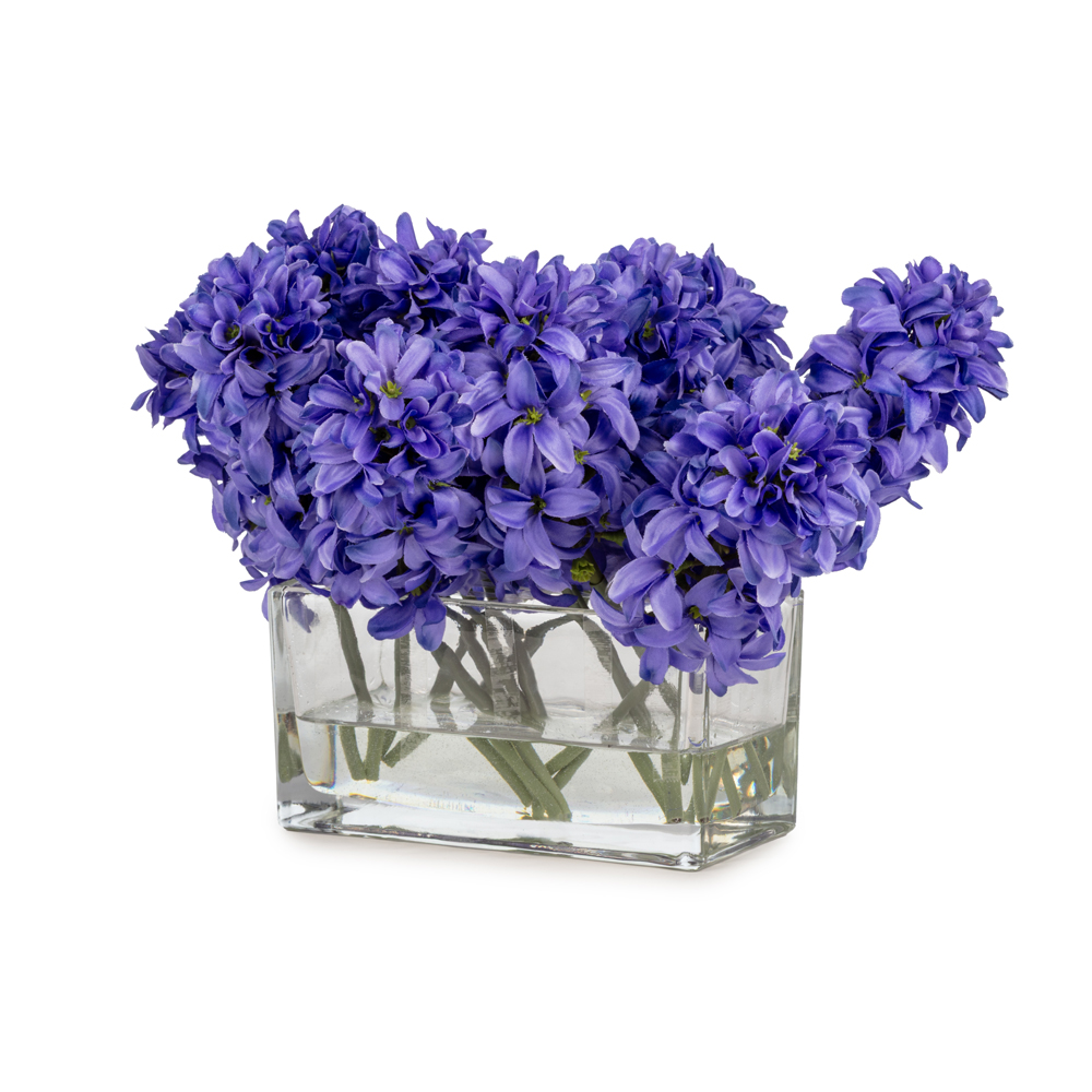 KUK Çiçek » Yapay Çiçek Aranjman » Cam Vazolu Aranjmanlar » Jelli Mor Sümbül Aranjman (26 CM)