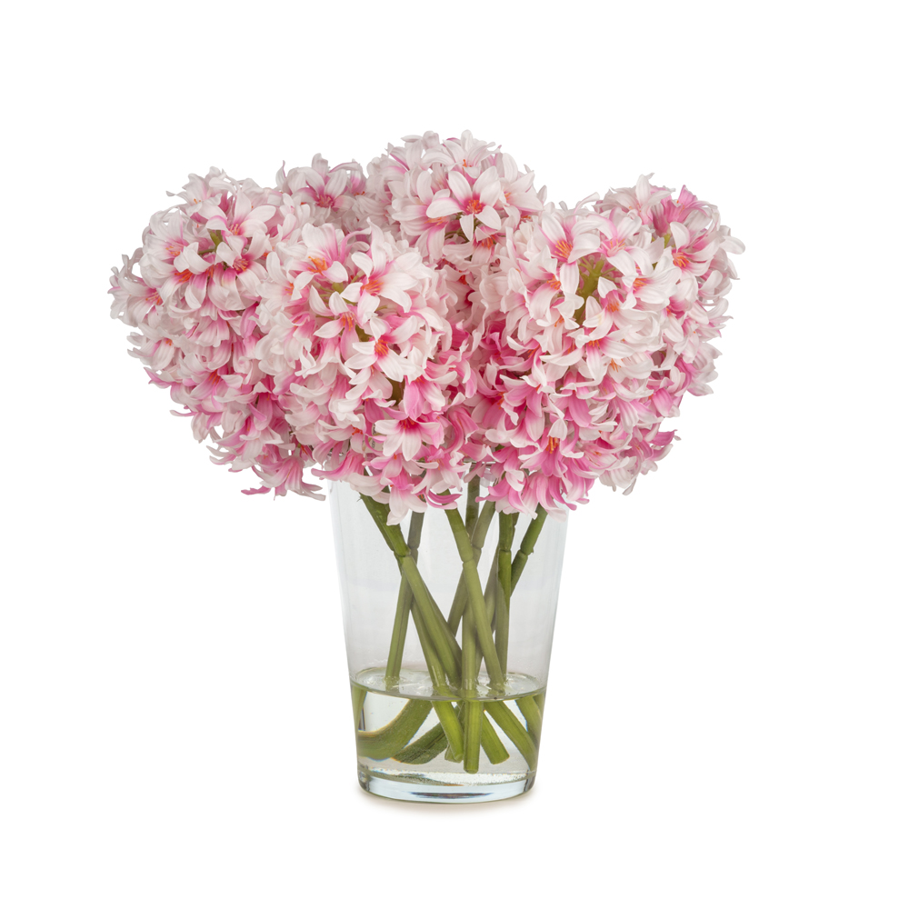 KUK Çiçek » Yapay Çiçek Aranjman » Cam Vazolu Aranjmanlar » Jelli Pembe Sümbül Aranjman (38 CM)