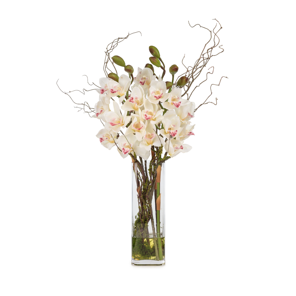 KUK Çiçek » Yapay Çiçek Aranjman » Cam Vazolu Aranjmanlar » Jelli Uzun Cam Vazoda Islak Dokulu Beyaz Orkide Aranjman (70 CM)