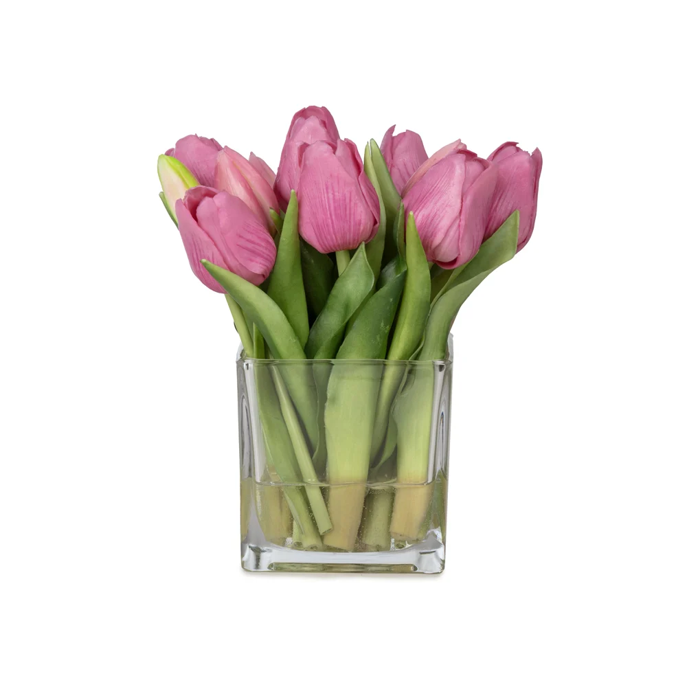 Küçük Boy Kare Cam Vazoda Islak Dokulu Jelli Mauve Lale Aranjman (20 CM)