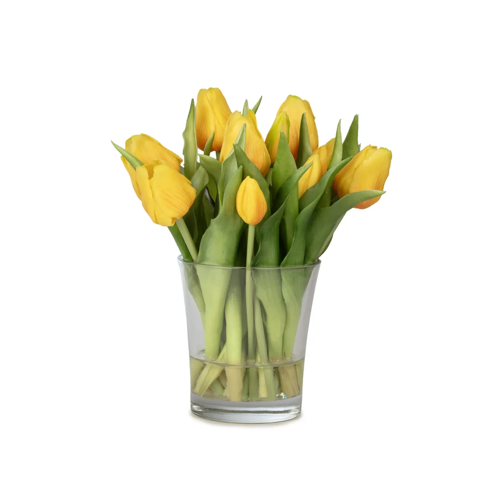 Küçük Cam Vazoda Islak Dokulu Jelli Sarı Lale Aranjman (23 CM)