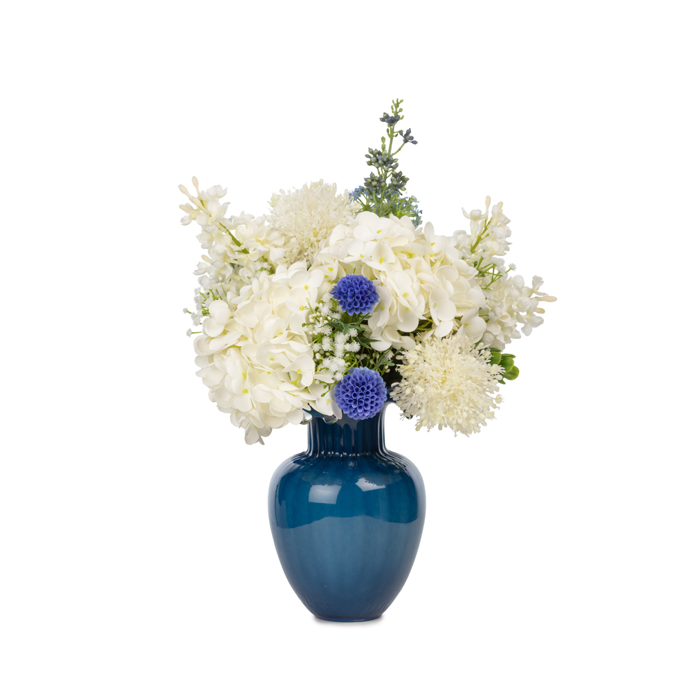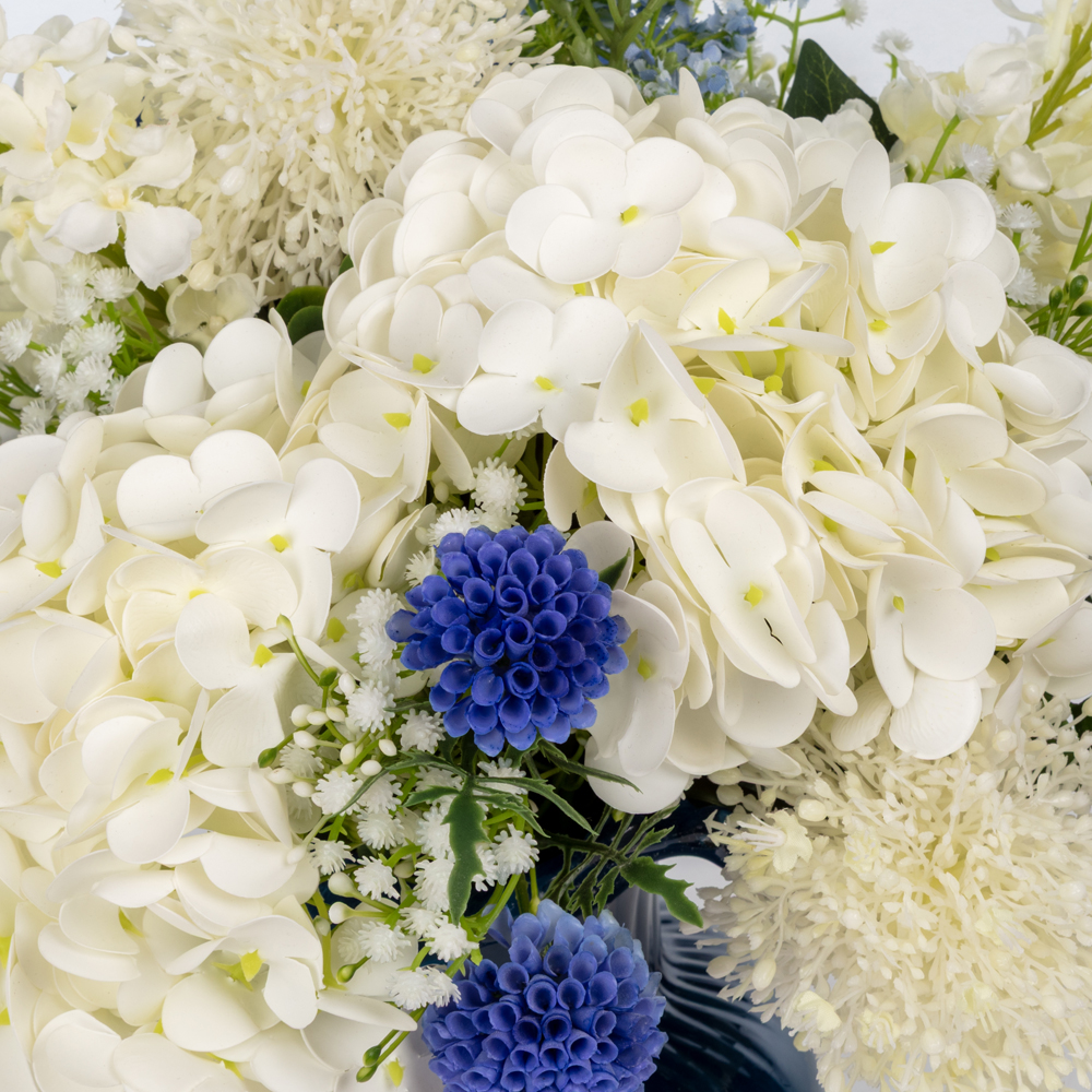 Mavi Cam Vazoda Karışık Ortanca Aranjman (45 CM)