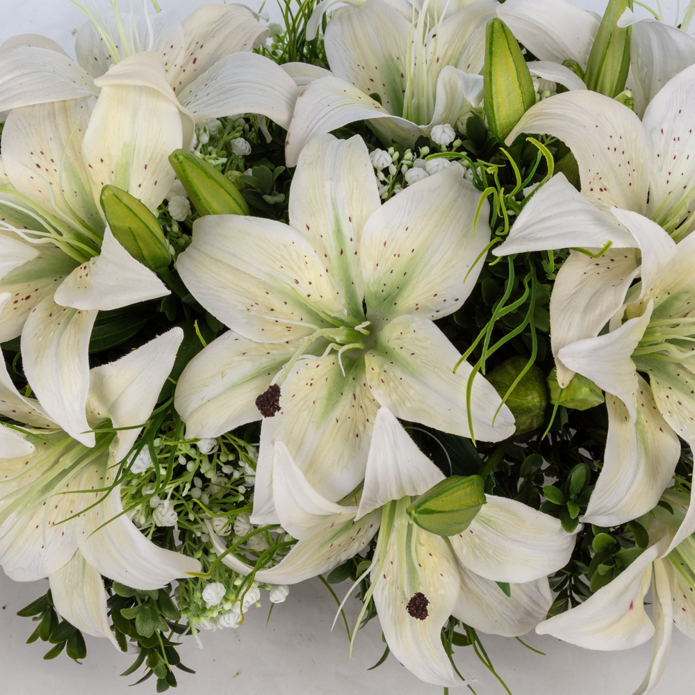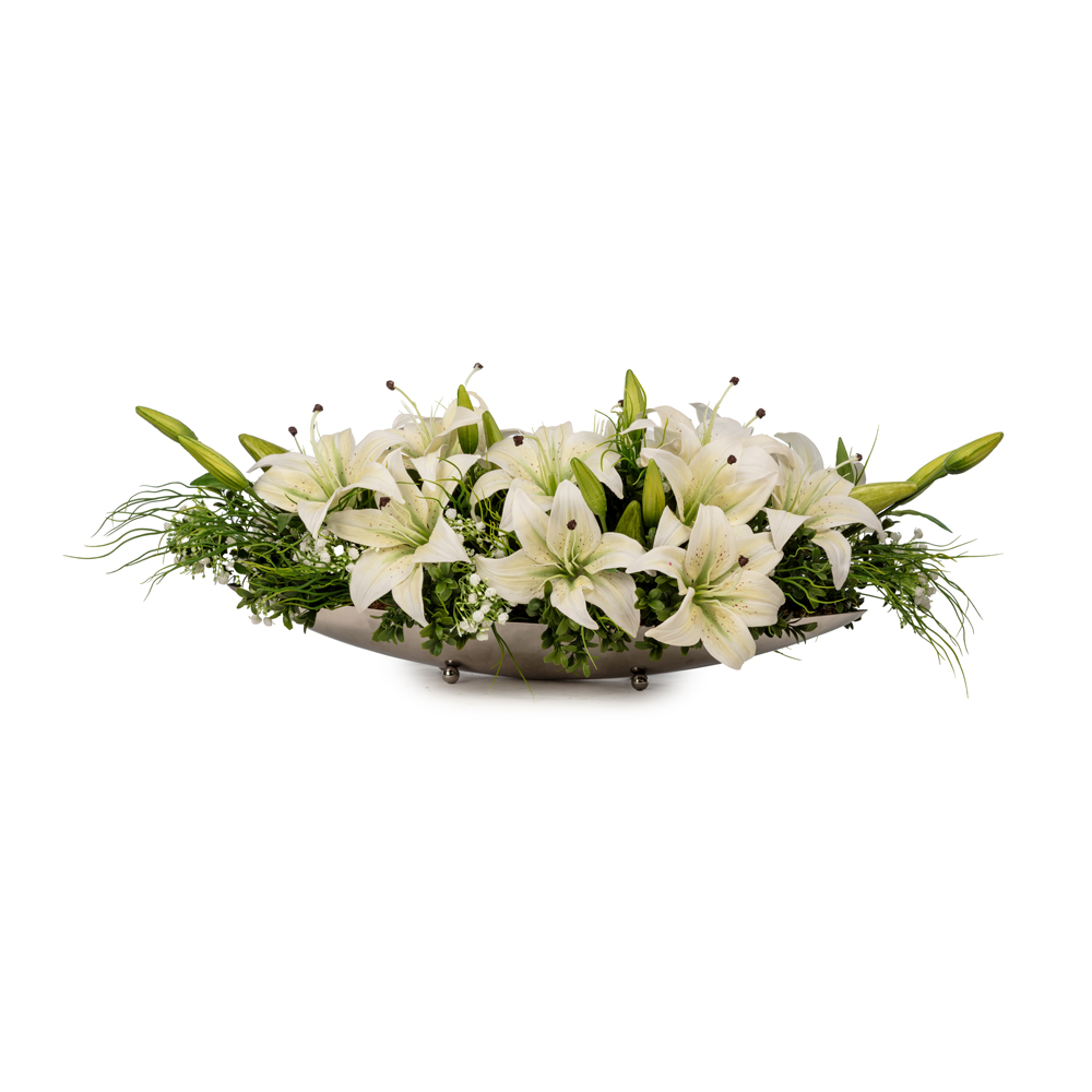 KUK Çiçek » Yapay Çiçek Aranjman » Lilyum Aranjmanlar » Metal Gondol Saksı Beyaz Lilyum Aranjman (60 CM)