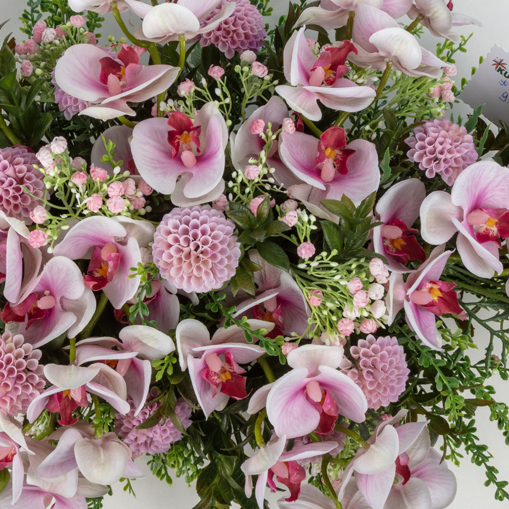 KUK Çiçek » Yapay Çiçek Aranjman » Lilyum Aranjmanlar » Metal Gondol Vazo Islak Dokulu Pembe Orkide Aranjman (50 CM)
