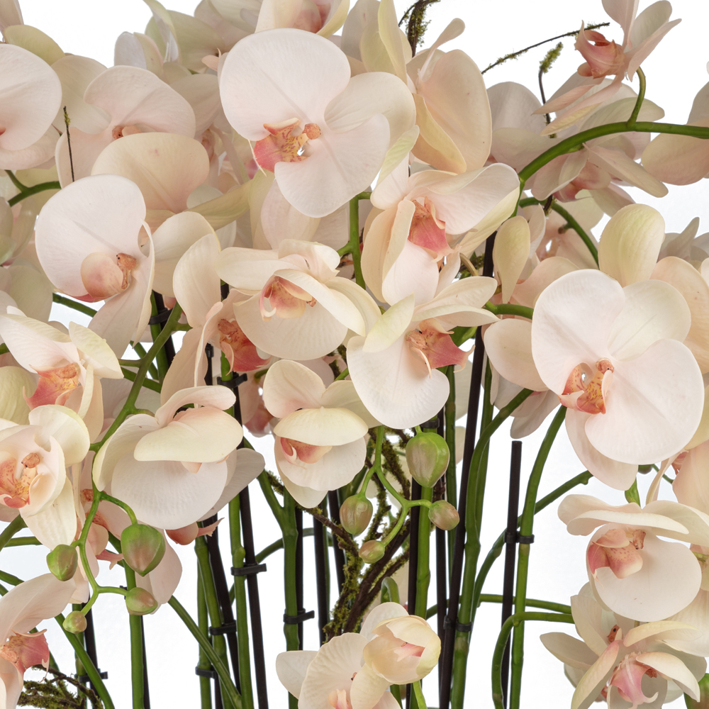 KUK Çiçek » Yapay Çiçek Aranjman » Metal Saksıda Islak Dokulu Pembe Orkide Aranjman (80 CM)