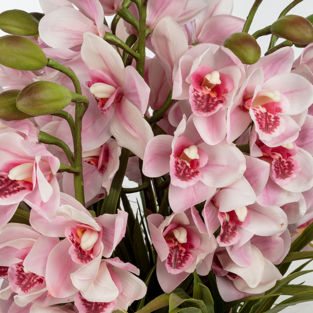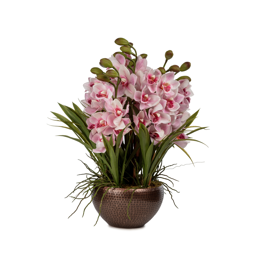 Metal Vazo Islak Dokulu Pembe Vandal Orkide Aranjman (70 CM)