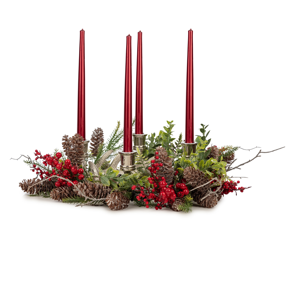 KUK Çiçek » Yılbaşı Süsleri » Masaüstü Modelleri » Diğer Objeler » Mumluk Aranjman 4 Lü (13 CM)