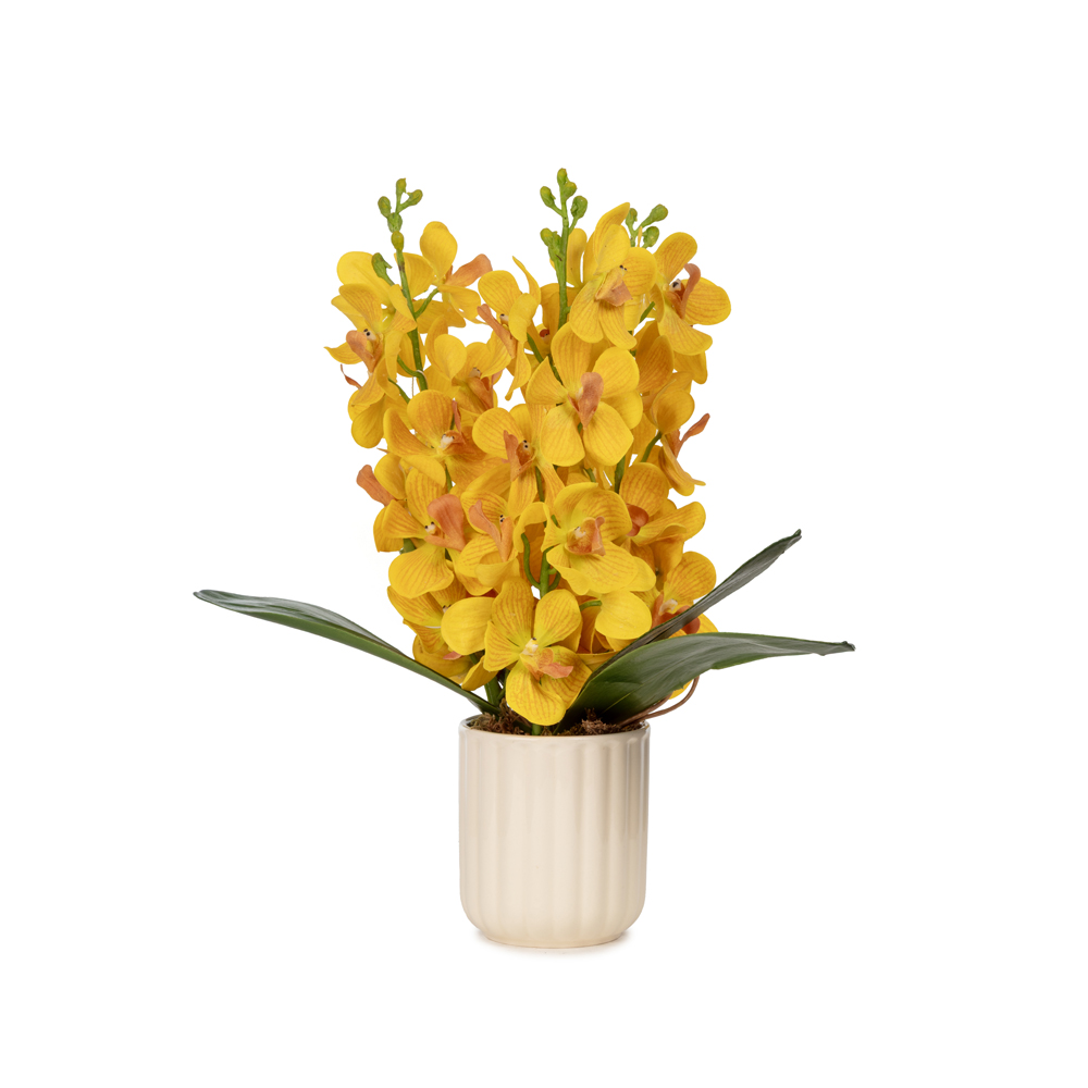 KUK Çiçek » Yapay Çiçek Aranjman » Bleu Blanc Vazolu Aranjmanlar » Seramik Vazo Islak Dokulu Sarı Orkide Aranjman (40 CM)