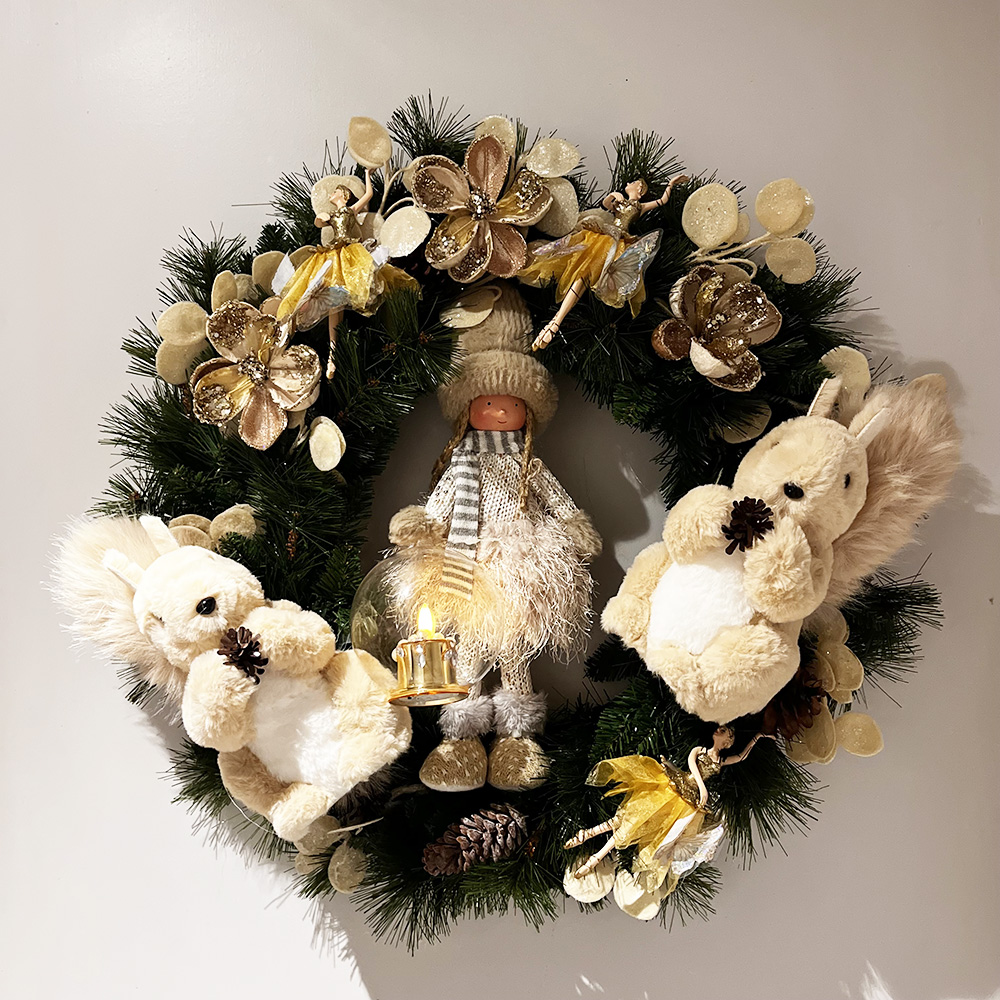 KUK Çiçek » Yılbaşı Süsleri » Yılbaşı Kapı Süsleri » Çam Kapı Süsleri » Sincaplı Bebekli Kapı Çelengi (50 CM)