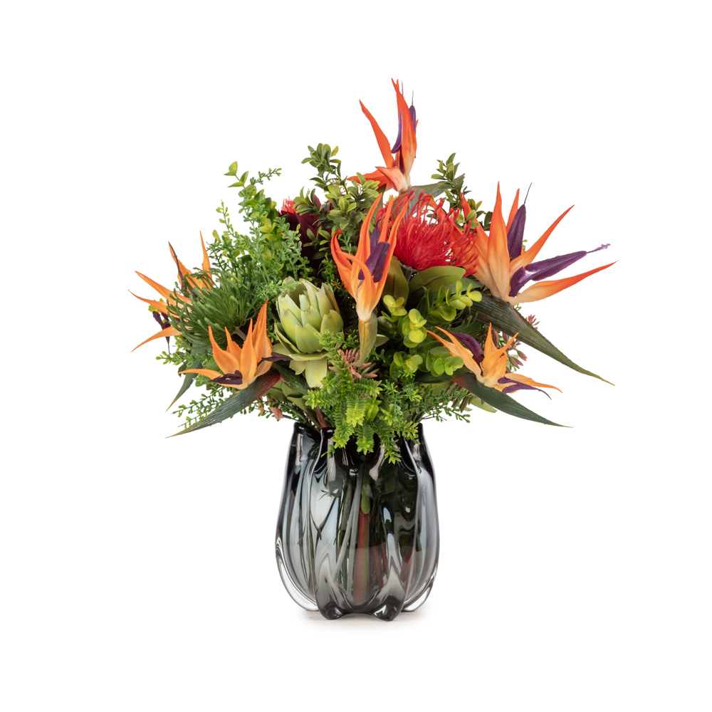 KUK Çiçek » Yapay Çiçek Aranjman » Cam Vazolu Aranjmanlar » Siyah Cam Vazo Starliçe Karışık Aranjman (45 CM)